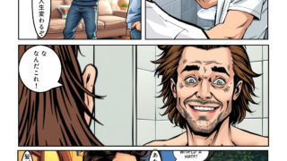 新薬で毛が生えた男(Udemy講座内のAIマンガ)